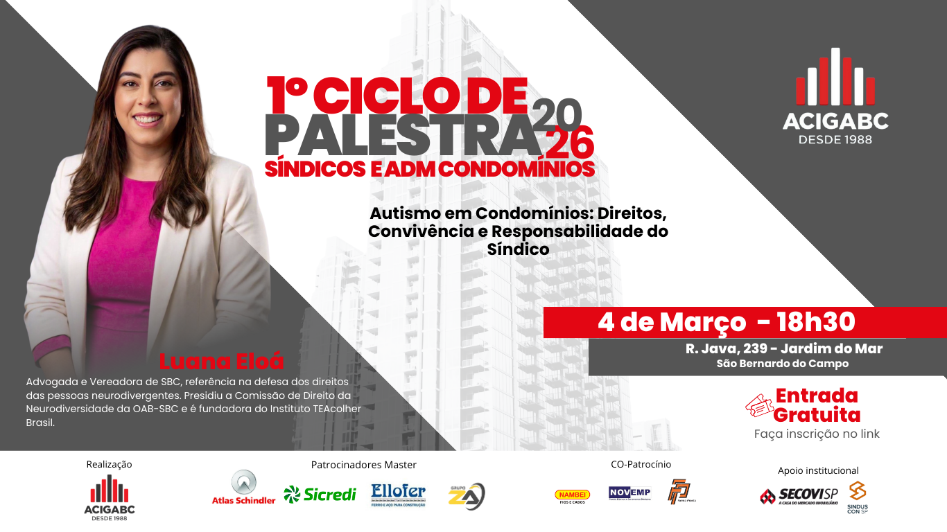 Advogada, vereadora e fundadora do Instituto TEAcolher Brasil, Luana Eloá traz uma abordagem prática sobre neurodiversidade, inclusão e responsabilidade nos condomínios, contribuindo para uma gestão mais humana, consciente e alinhada à legislação.